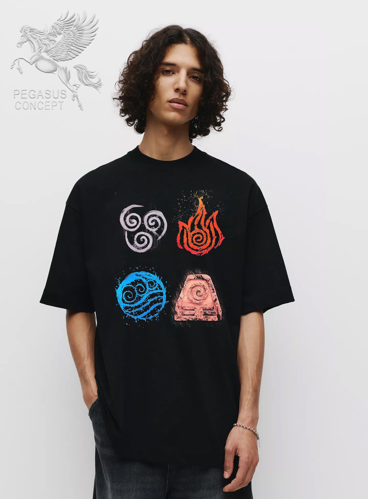 Μπλούζα μακό Premium ποιότητας σε χρώμα μαύρο με τύπωμα 4 Natural Elements