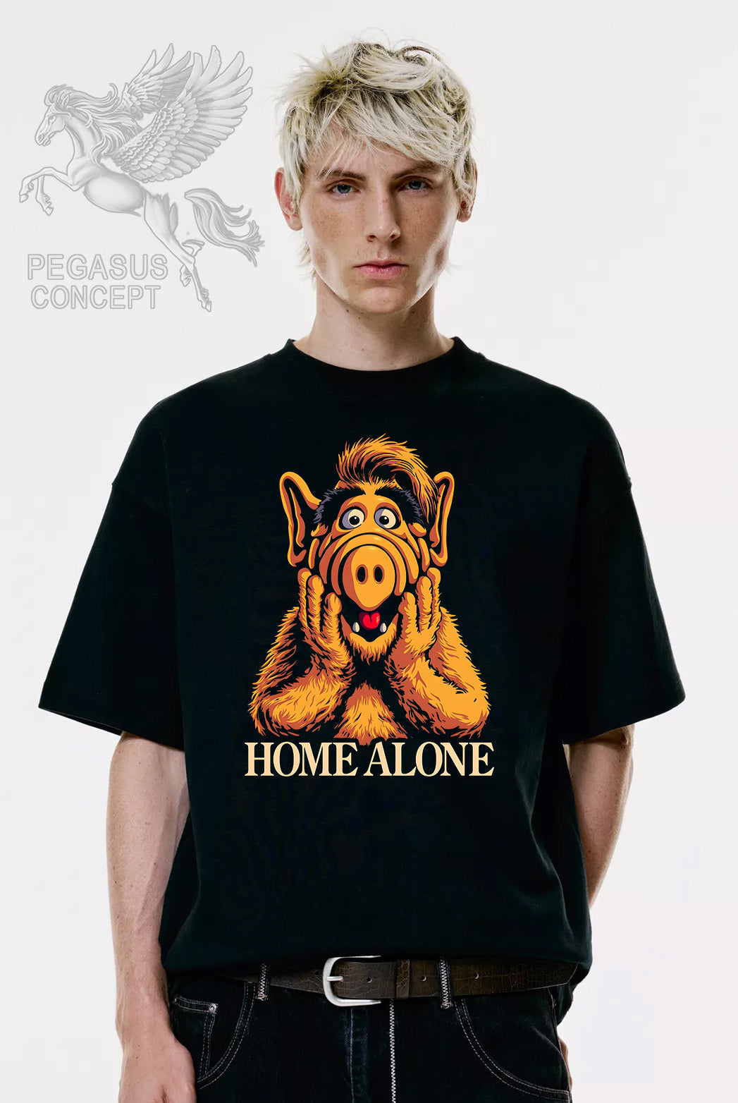 Μπλούζα μακό Premium ποιότητας σε χρώμα μαύρο με τύπωμα Alf the Alien - Home Alone