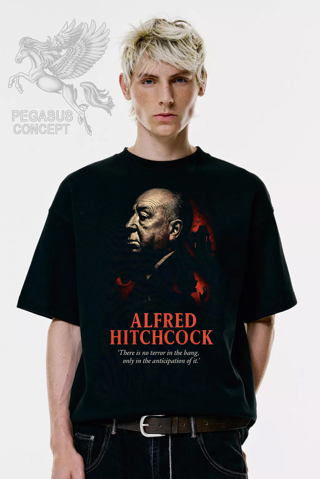 Μπλούζα μακό Premium ποιότητας σε χρώμα μαύρο με τύπωμα Alfred Hitchock