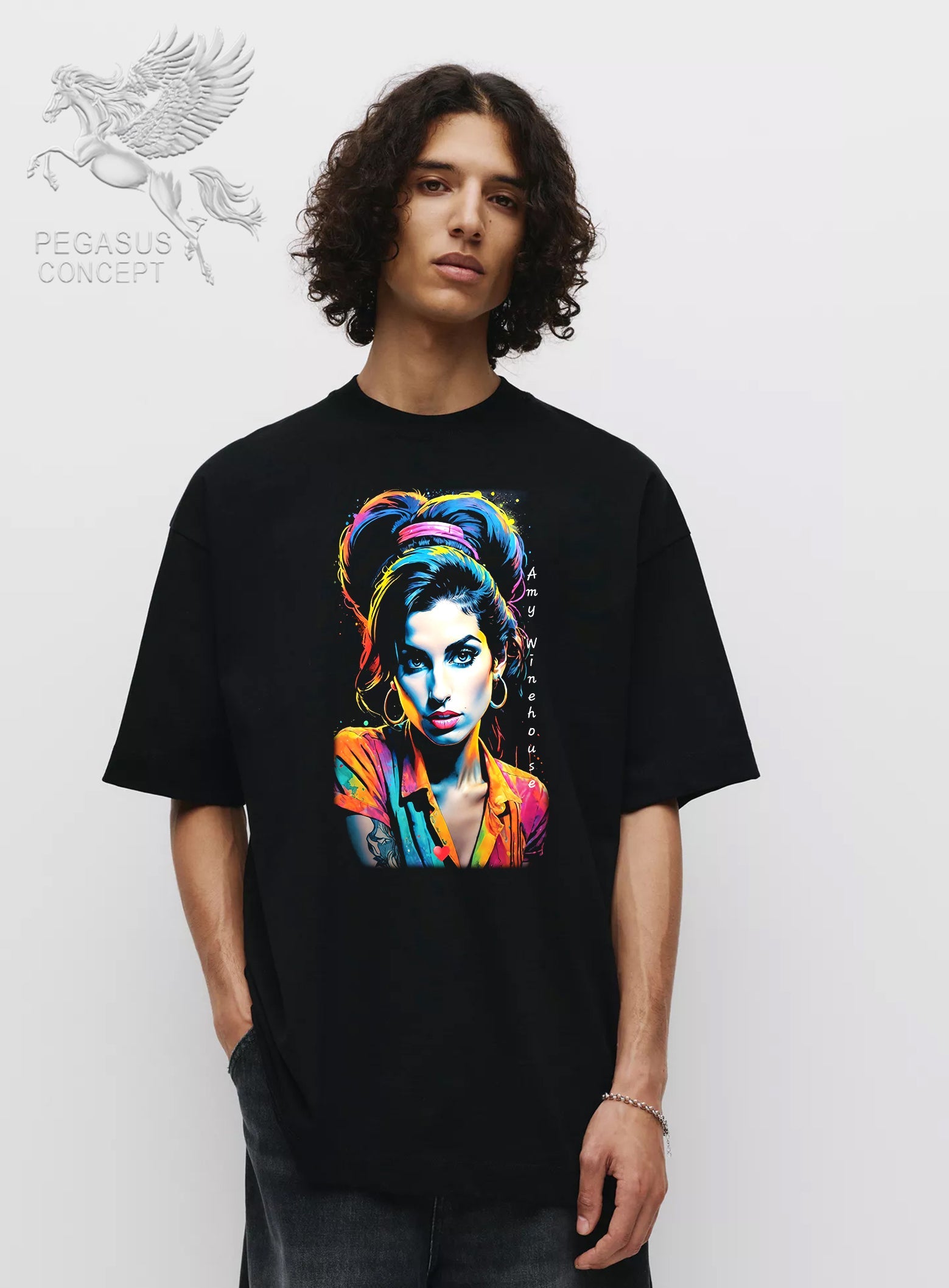 Μπλούζα μακό Premium ποιότητας σε χρώμα μαύρο με τύπωμα Amy Winehouse