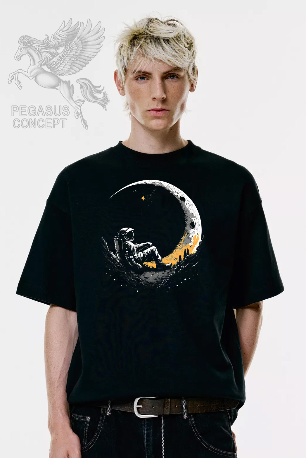 Μπλούζα μακό Premium ποιότητας σε χρώμα μαύρο με τύπωμα Astronaut half moon