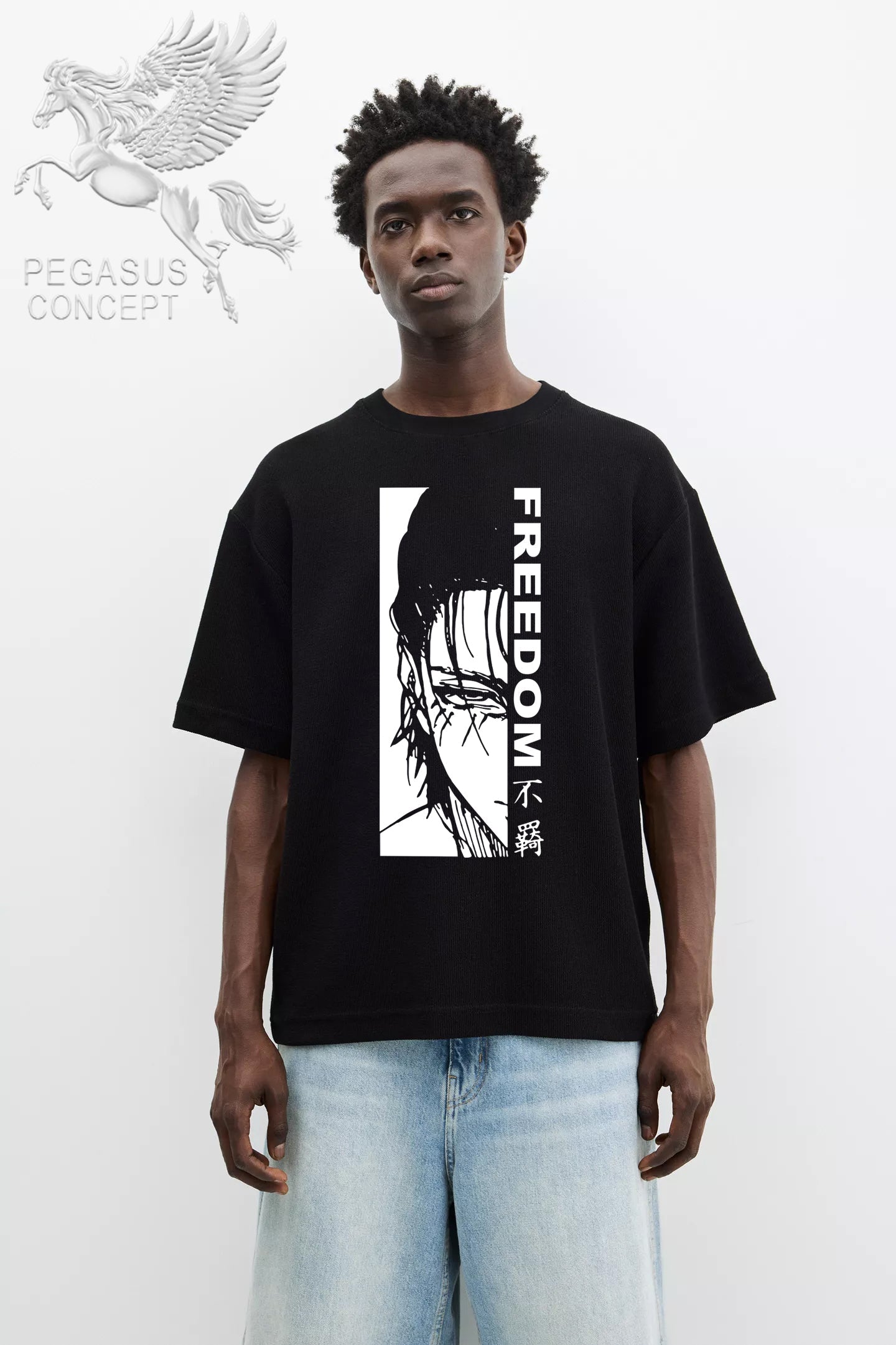 Μπλούζα μακό Premium ποιότητας σε χρώμα μαύρο με τύπωμα Attack on Titan - Freedom
