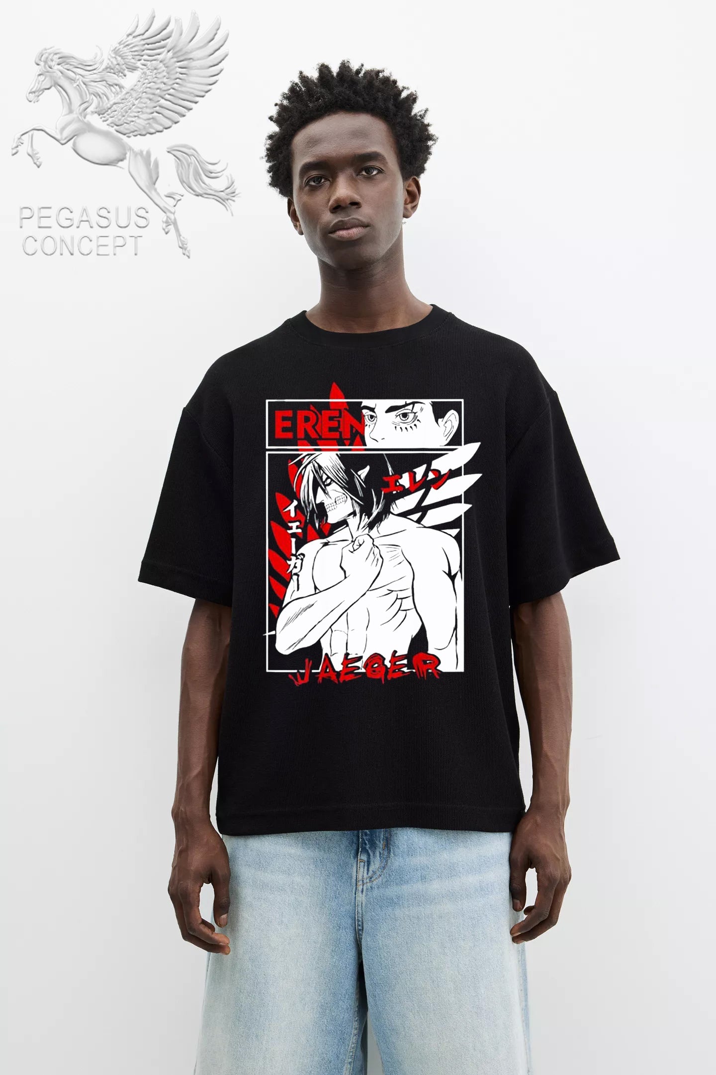 Μπλούζα μακό Premium ποιότητας σε χρώμα μαύρο με τύπωμα Attack on Titan