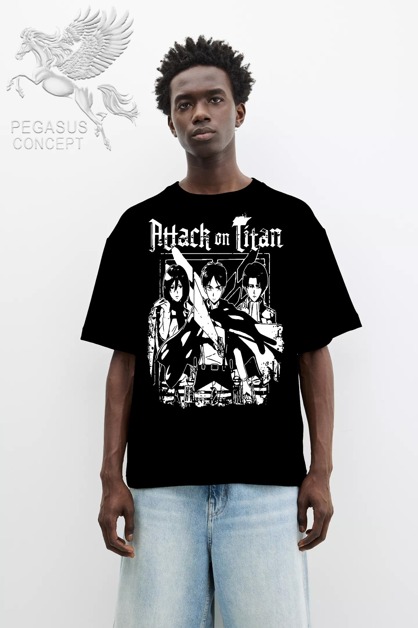 Μπλούζα μακό Premium ποιότητας σε χρώμα μαύρο με τύπωμα Attack on Titan