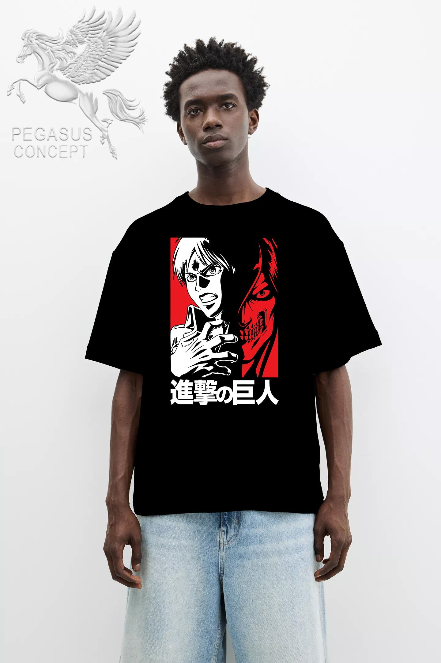 Μπλούζα μακό Premium ποιότητας σε χρώμα μαύρο με τύπωμα Attack on Titan
