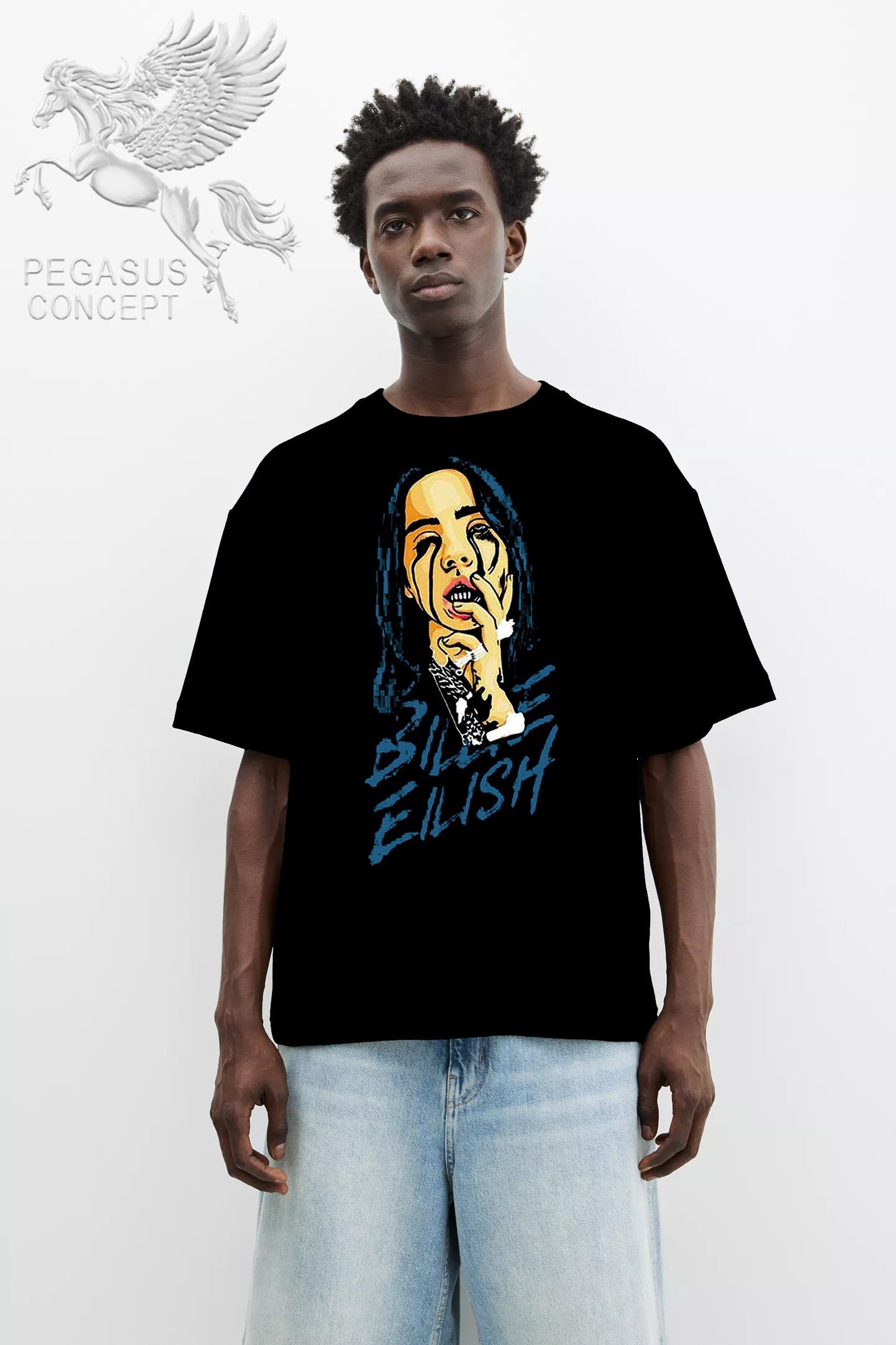 Μπλούζα μακό Premium ποιότητας σε χρώμα μαύρο με τύπωμα Billie Eilish