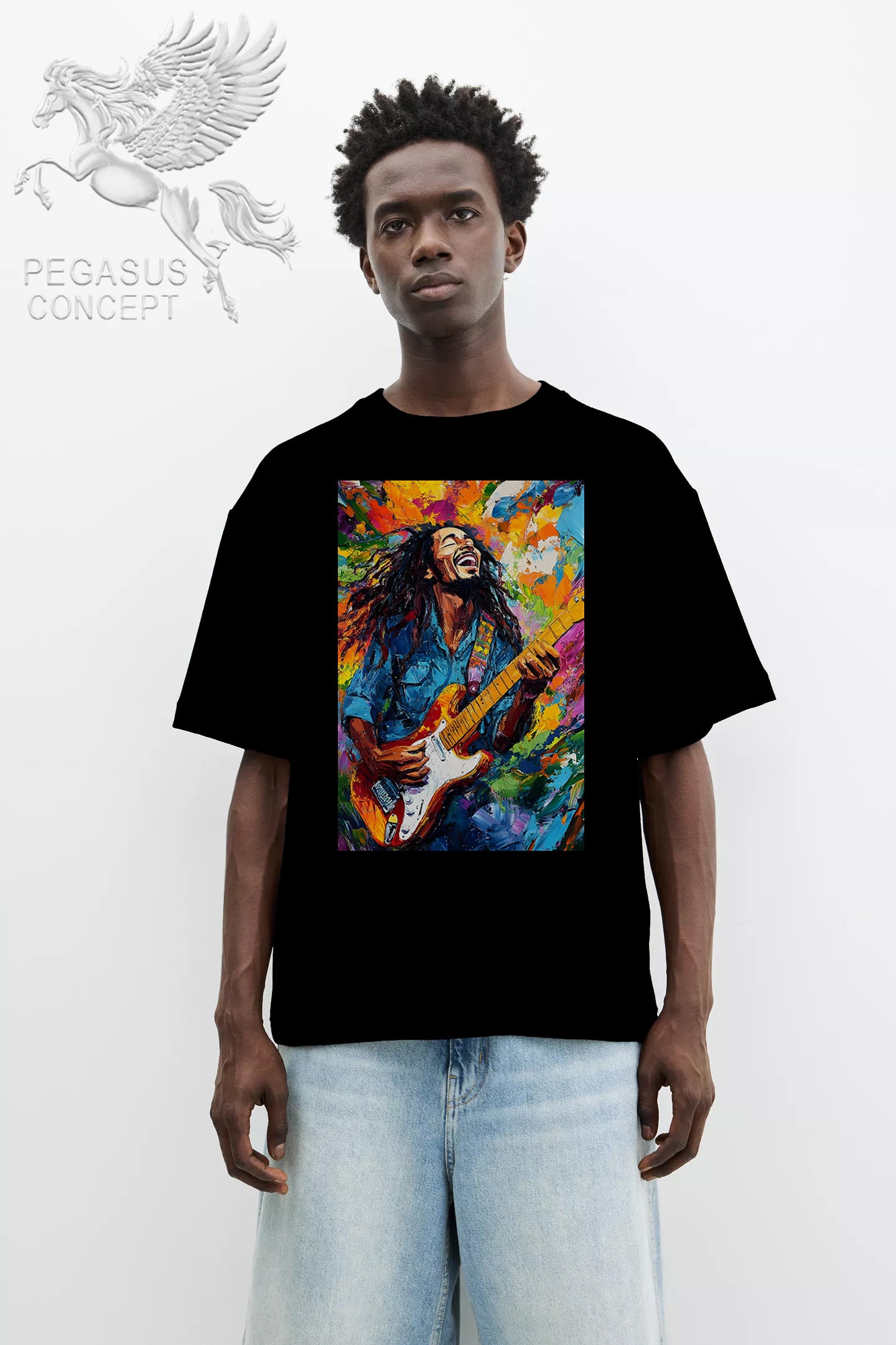 Μπλούζα μακό Premium ποιότητας σε χρώμα μαύρο με τύπωμα Bob Marley