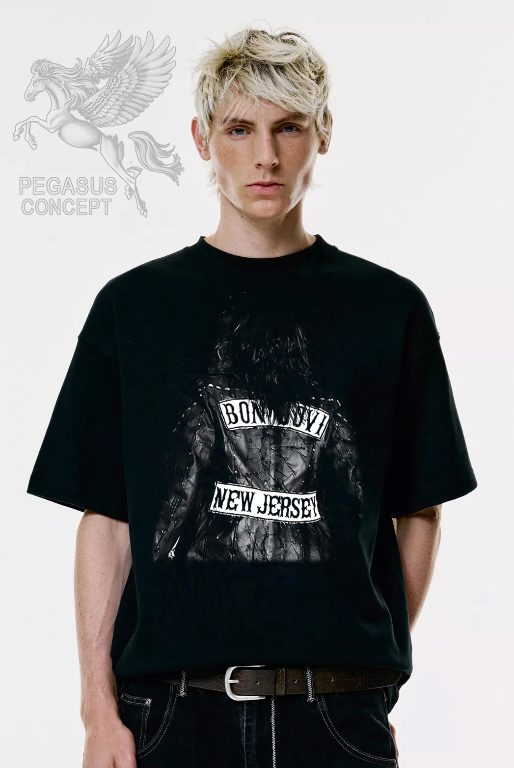 Μπλούζα μακό Premium ποιότητας σε χρώμα μαύρο με τύπωμα Bon Jovi - New Jersey