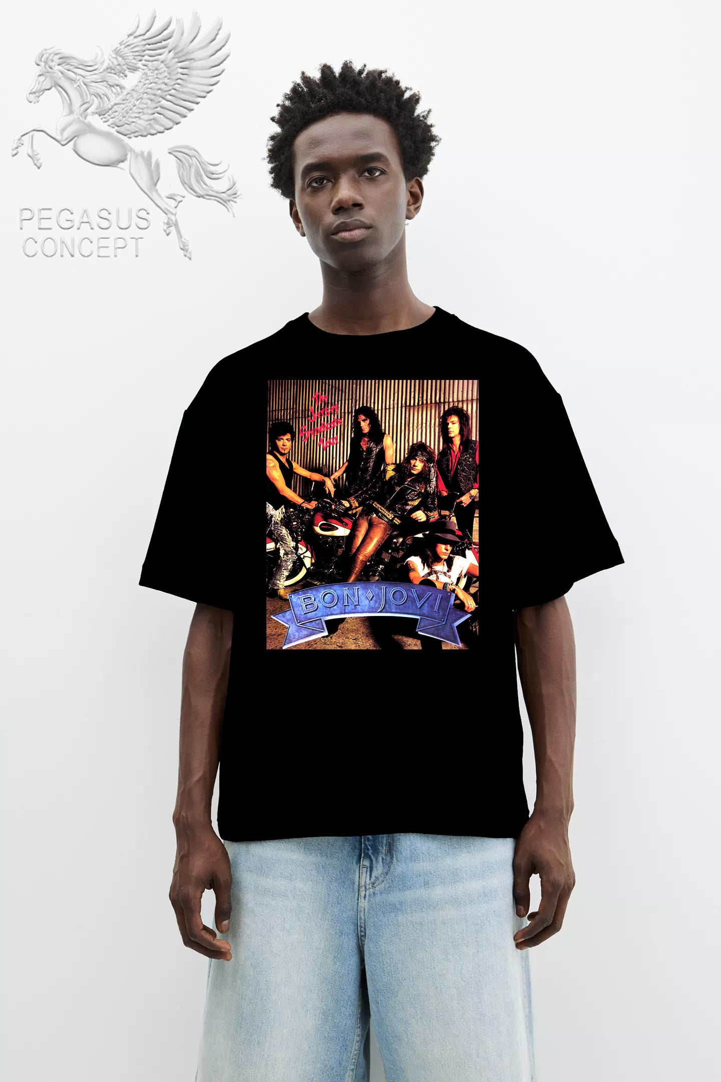 Μπλούζα μακό Premium ποιότητας σε χρώμα μαύρο με τύπωμα Bon Jovi