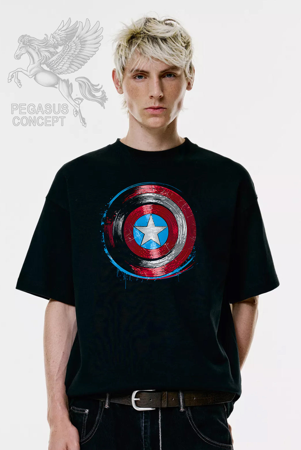 Μπλούζα μακό Premium ποιότητας σε χρώμα μαύρο με τύπωμα Captain America