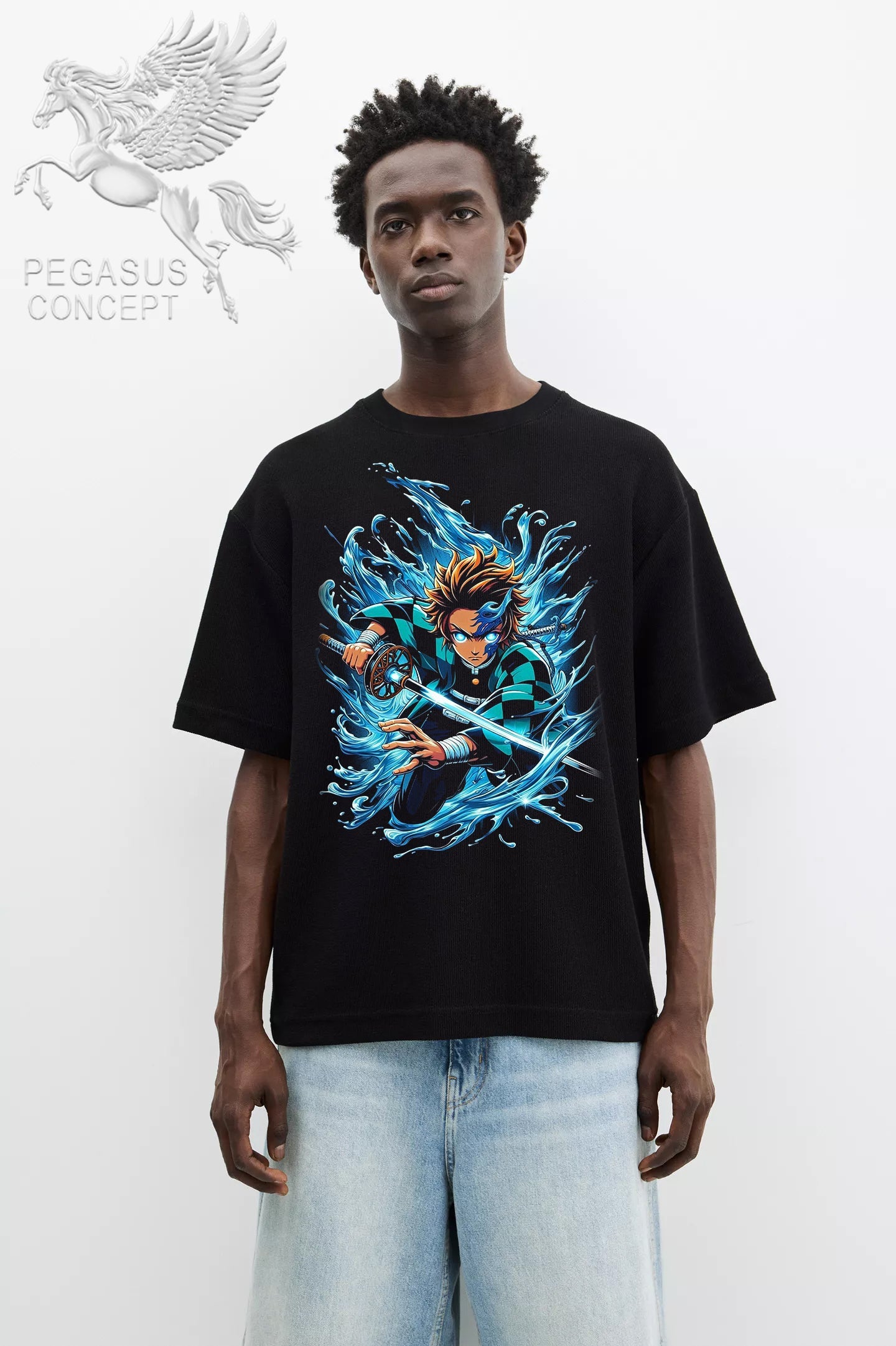 Μπλούζα μακό Premium ποιότητας σε χρώμα μαύρο με τύπωμα Demon Slayer
