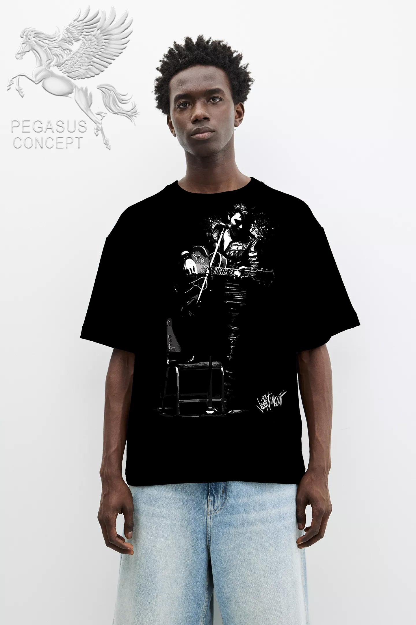 Μπλούζα μακό Premium ποιότητας σε χρώμα μαύρο με τύπωμα Elvis