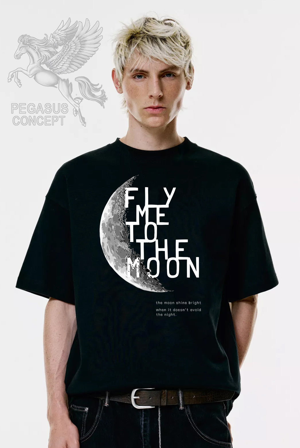 Μπλούζα μακό Premium ποιότητας σε χρώμα μαύρο με τύπωμα Fly me to the Moon
