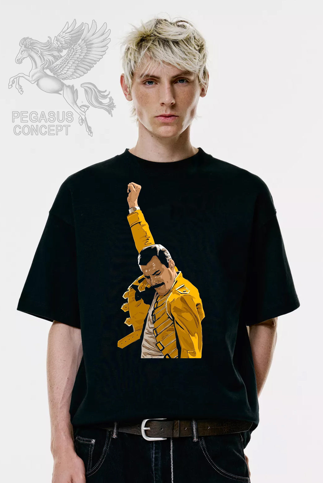 Μπλούζα μακό Premium ποιότητας σε χρώμα μαύρο με τύπωμα Freddie Mercury - Queen