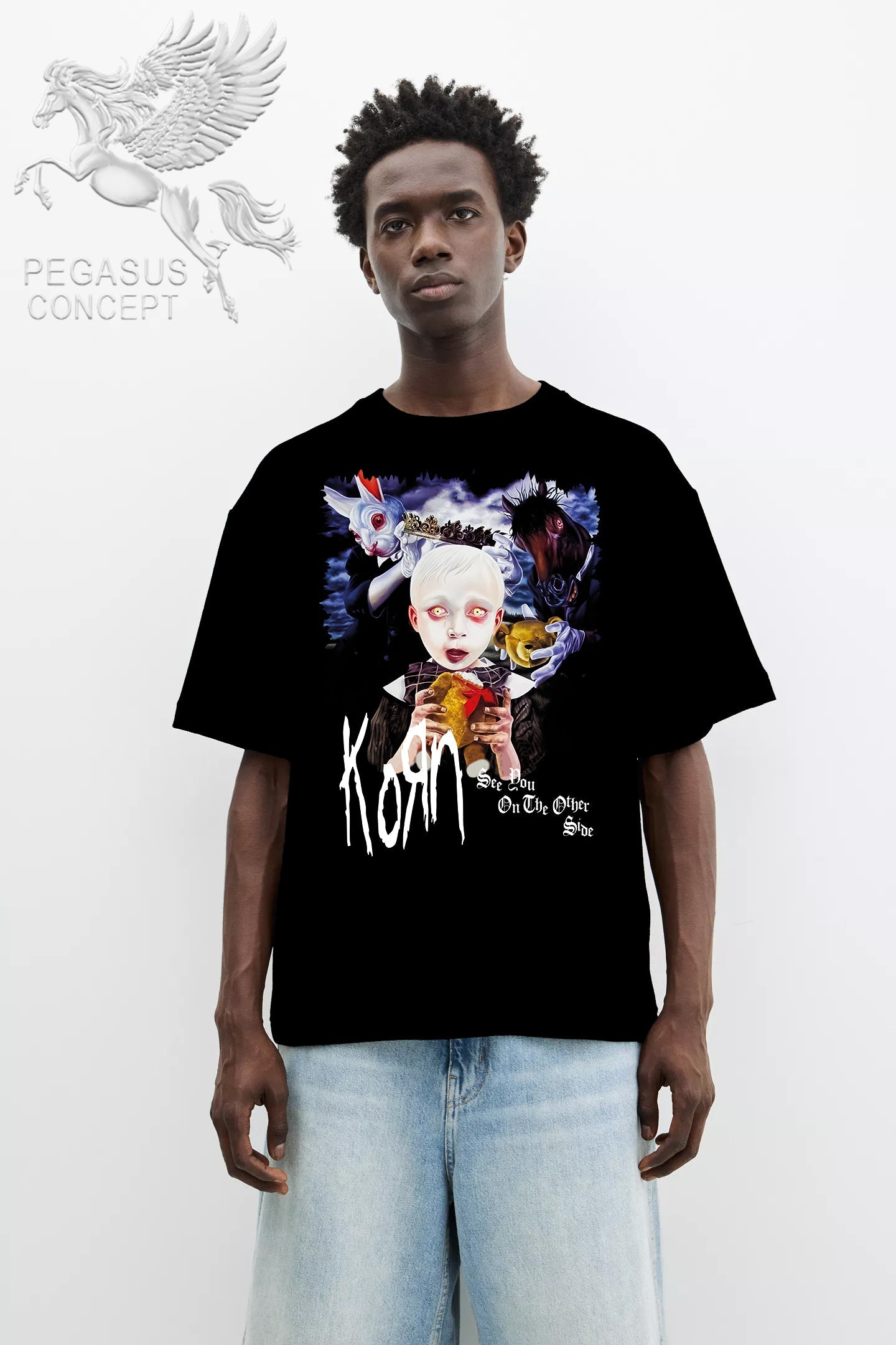 Μπλούζα μακό Premium ποιότητας σε χρώμα μαύρο με τύπωμα Korn