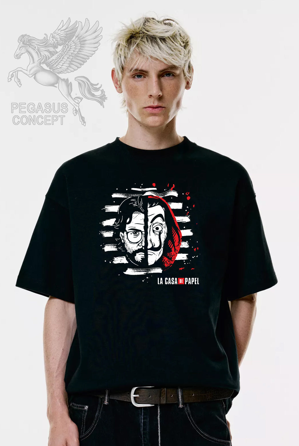 Μπλούζα μακό Premium ποιότητας σε χρώμα μαύρο με τύπωμα La casa del papel