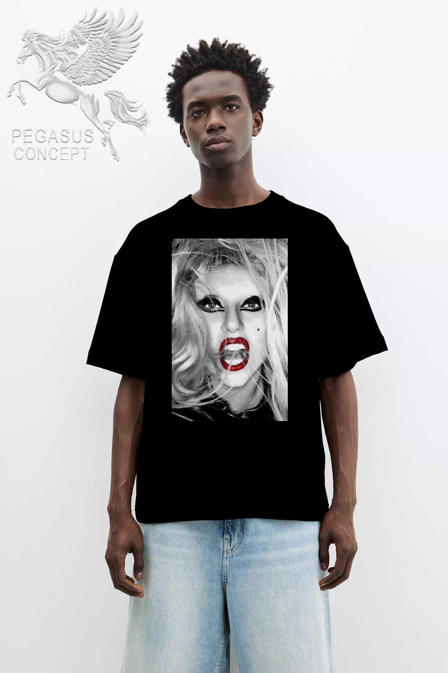 Μπλούζα μακό Premium ποιότητας σε χρώμα μαύρο με τύπωμα Lady Gaga
