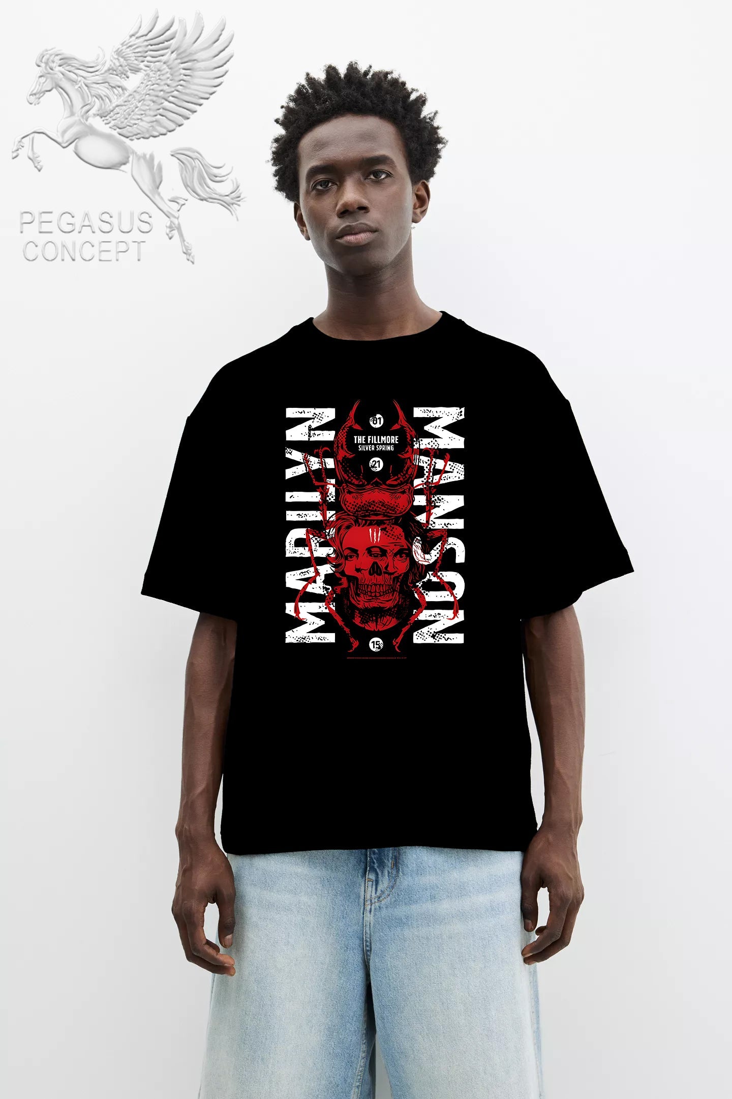 Μπλούζα μακό Premium ποιότητας σε χρώμα μαύρο με τύπωμα Marilyn Manson