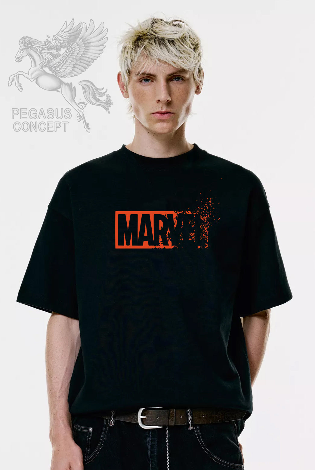 Μπλούζα μακό Premium ποιότητας σε χρώμα μαύρο με τύπωμα Marvel Logo Disolved