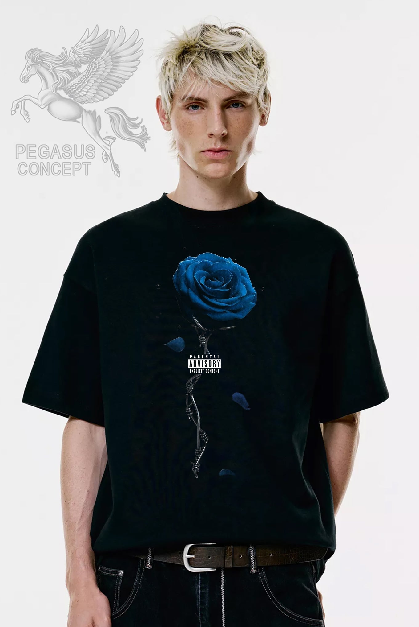 Μπλούζα μακό Premium ποιότητας σε χρώμα μαύρο με τύπωμα Parental Advisor Blue Rose
