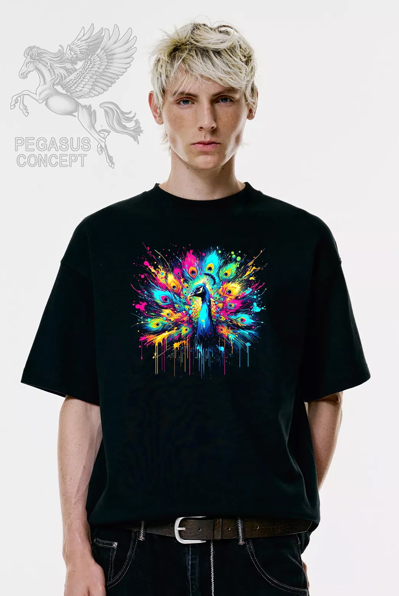 Μπλούζα μακό Premium ποιότητας σε χρώμα μαύρο με τύπωμα Peakhock colors Art