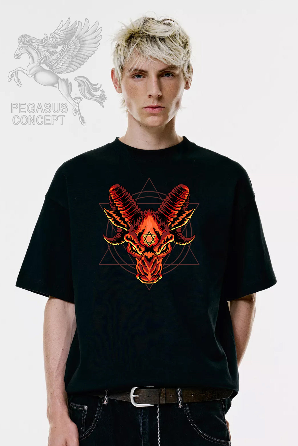Μπλούζα μακό Premium ποιότητας σε χρώμα μαύρο με τύπωμα Pentalpha Demon