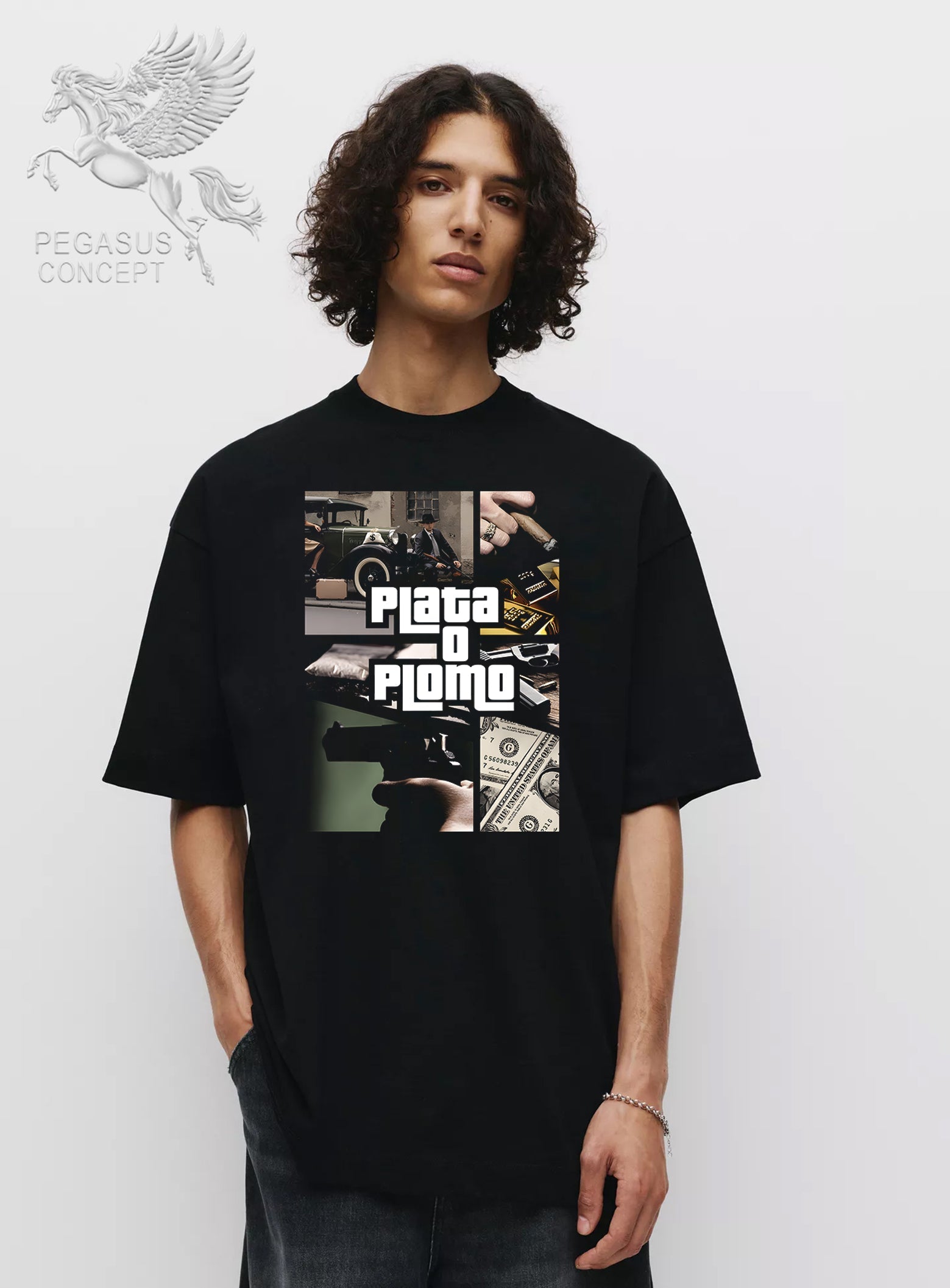 Μπλούζα μακό Premium ποιότητας σε χρώμα μαύρο με τύπωμα Plata o Plomo