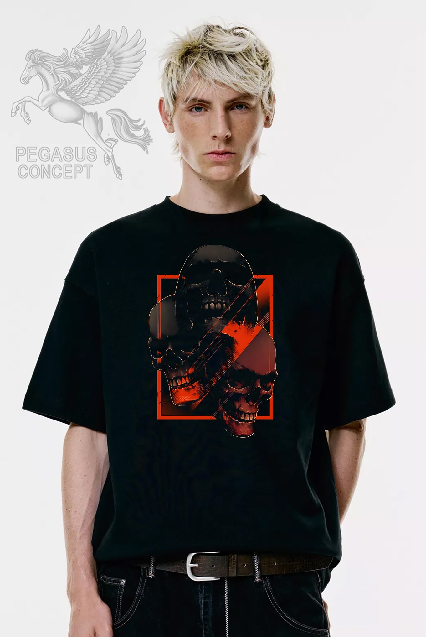 Μπλούζα μακό Premium ποιότητας σε χρώμα μαύρο με τύπωμα Red Skulls