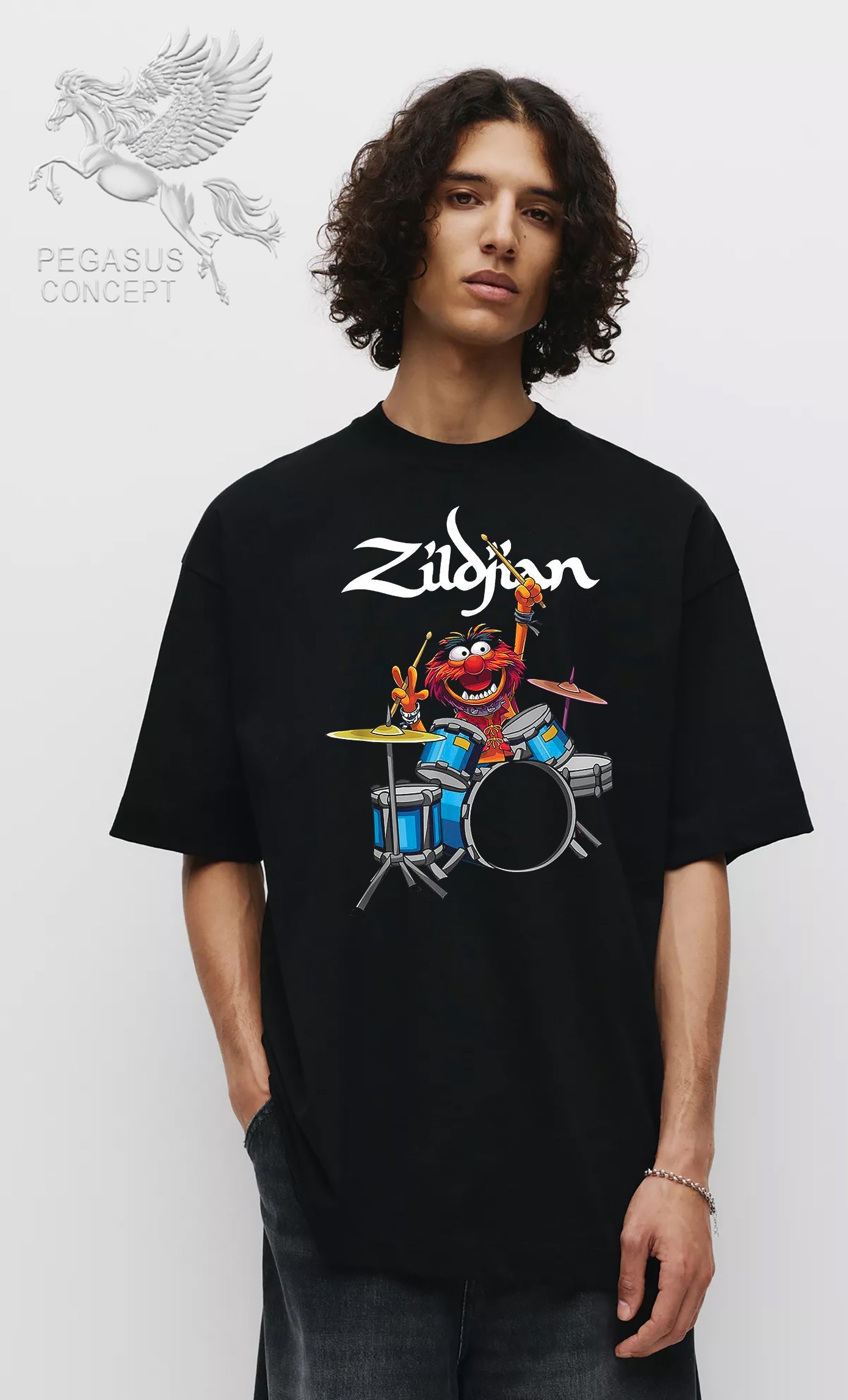 Μπλούζα μακό Premium ποιότητας σε χρώμα μαύρο με τύπωμα Sesame Street Drumer