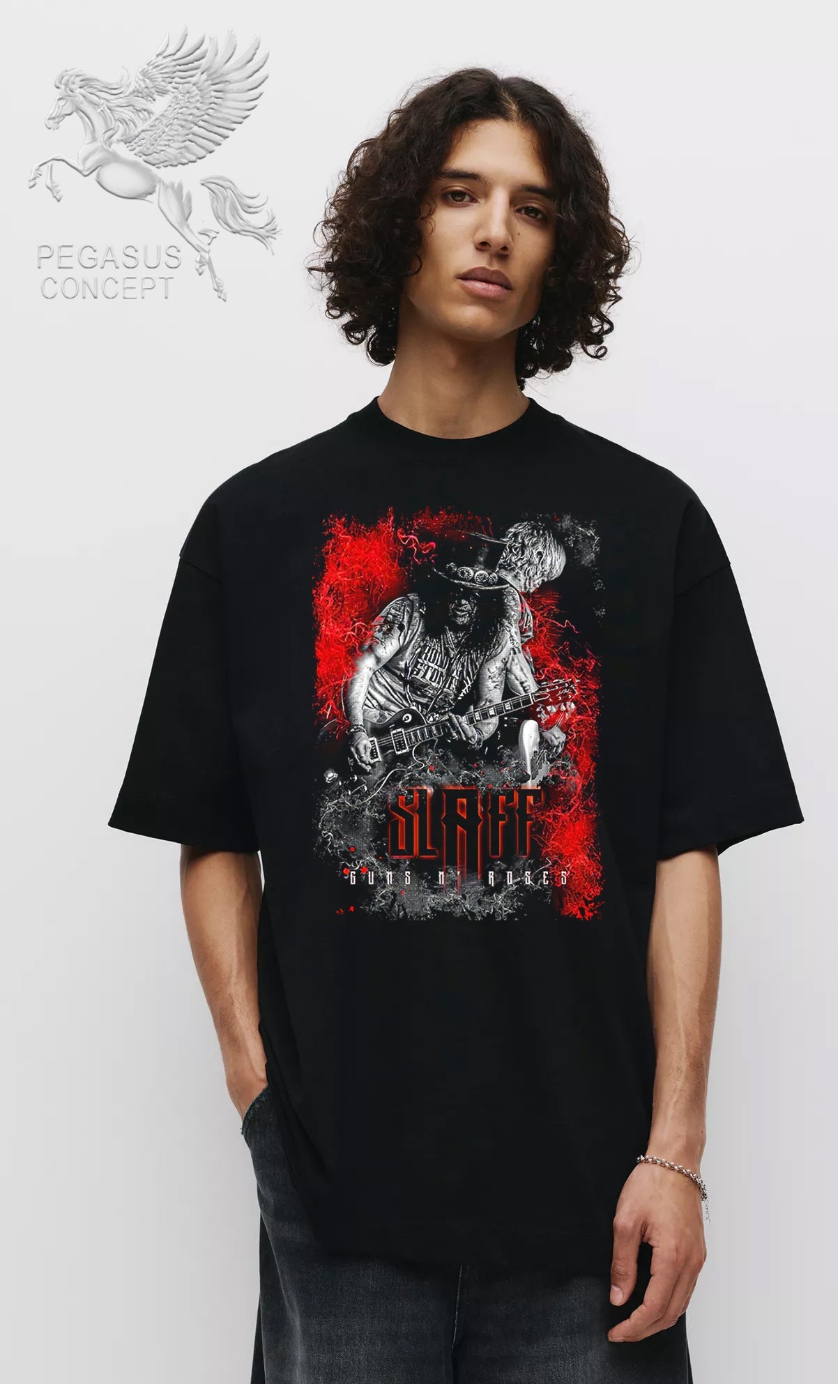 Μπλούζα μακό Premium ποιότητας σε χρώμα μαύρο με τύπωμα Slash - Guns N'Roses