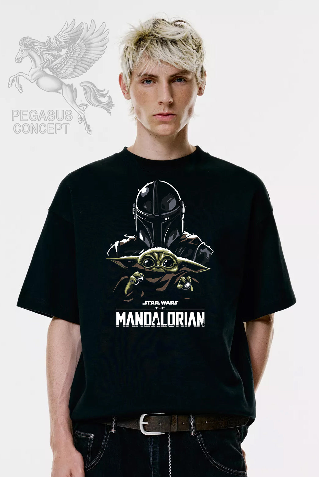 Μπλούζα μακό Premium ποιότητας σε χρώμα μαύρο με τύπωμα Star Wars Mandalorian & Joda