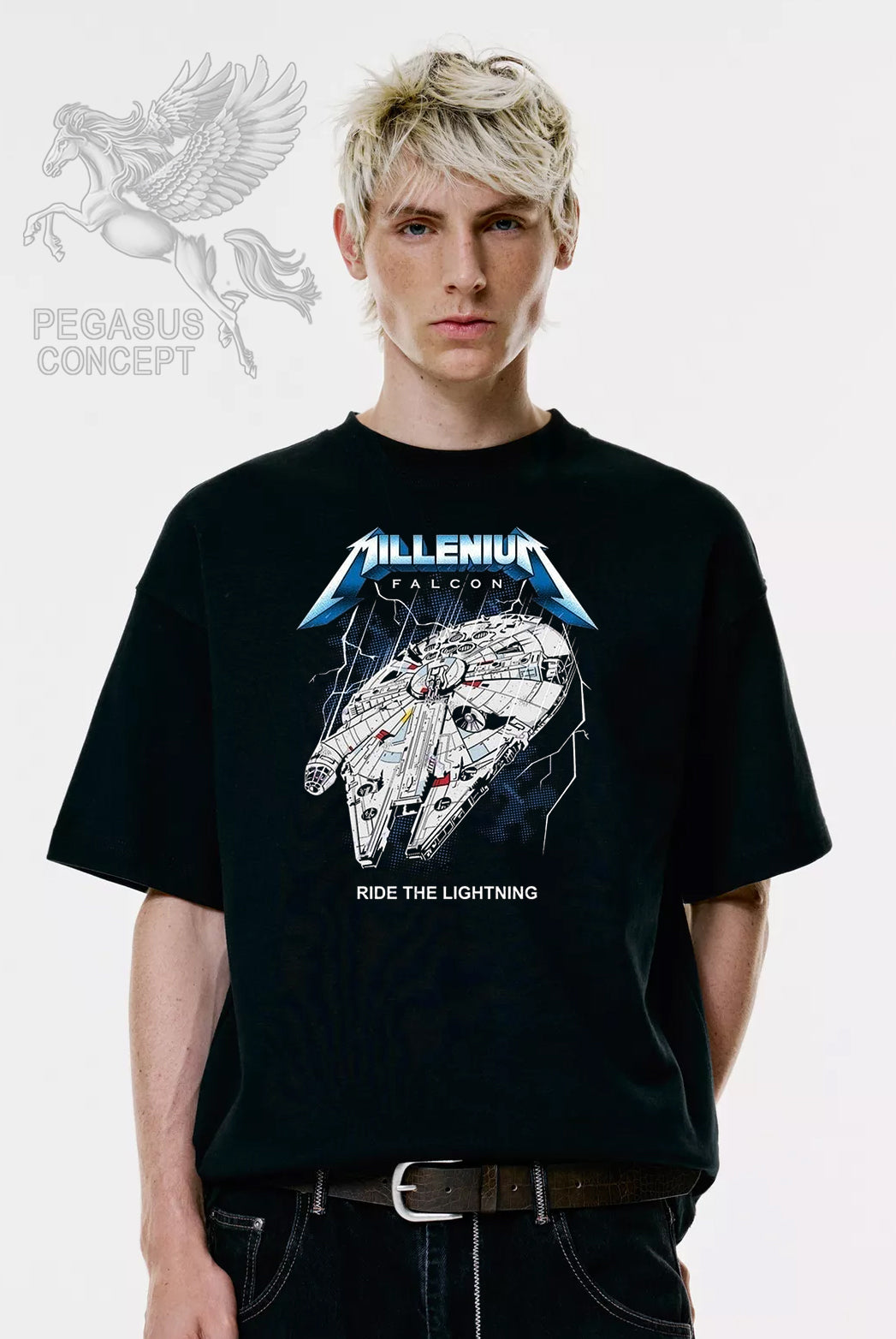Μπλούζα μακό Premium ποιότητας σε χρώμα μαύρο με τύπωμα Star Wars Millenium Falcon