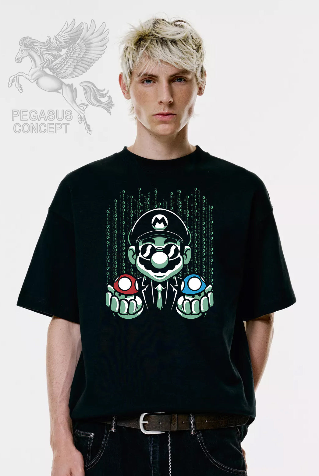 Μπλούζα μακό Premium ποιότητας σε χρώμα μαύρο με τύπωμα Supermario Matrix