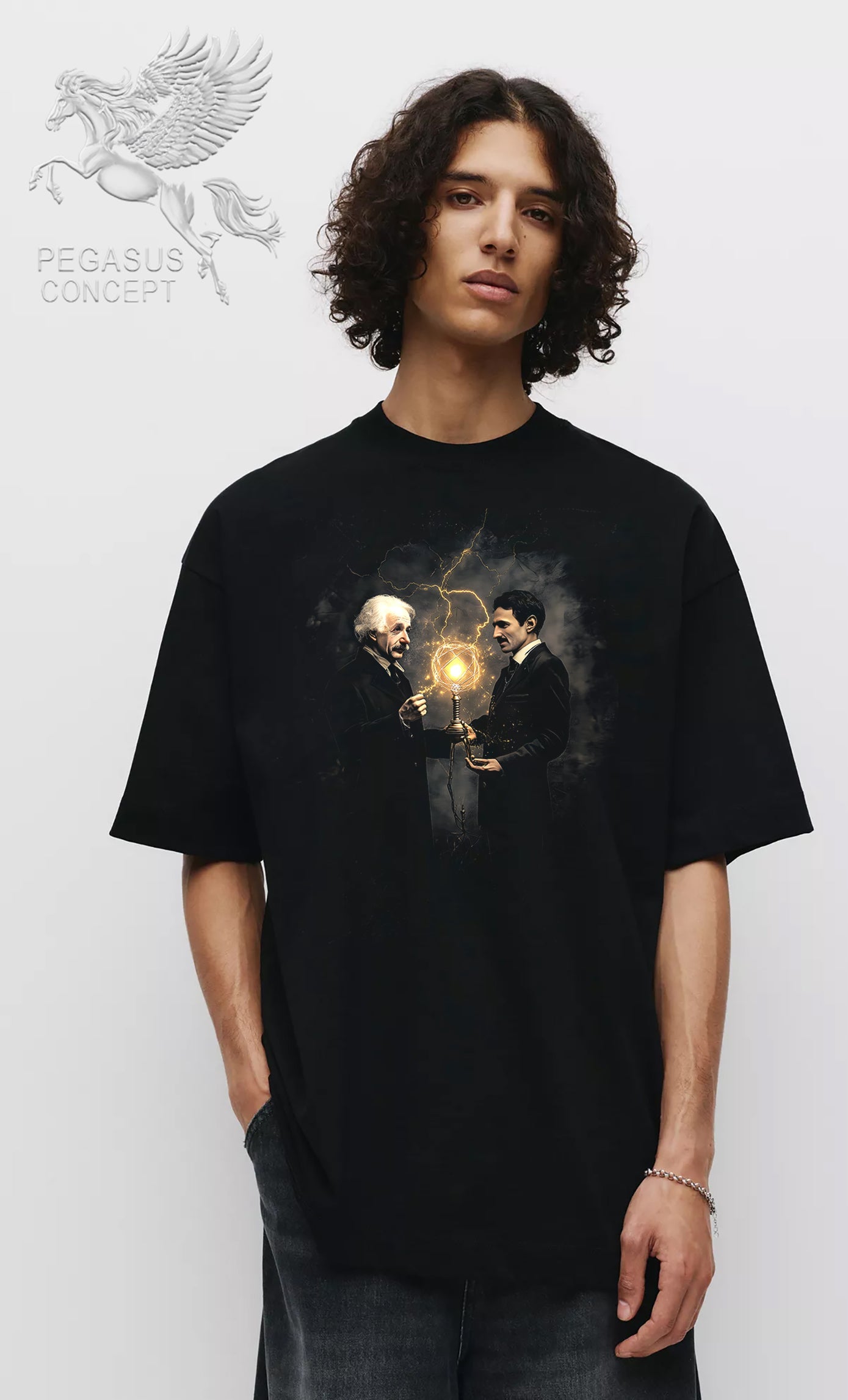 Μπλούζα μακό Premium ποιότητας σε χρώμα μαύρο με τύπωμα Tesla - Eistein