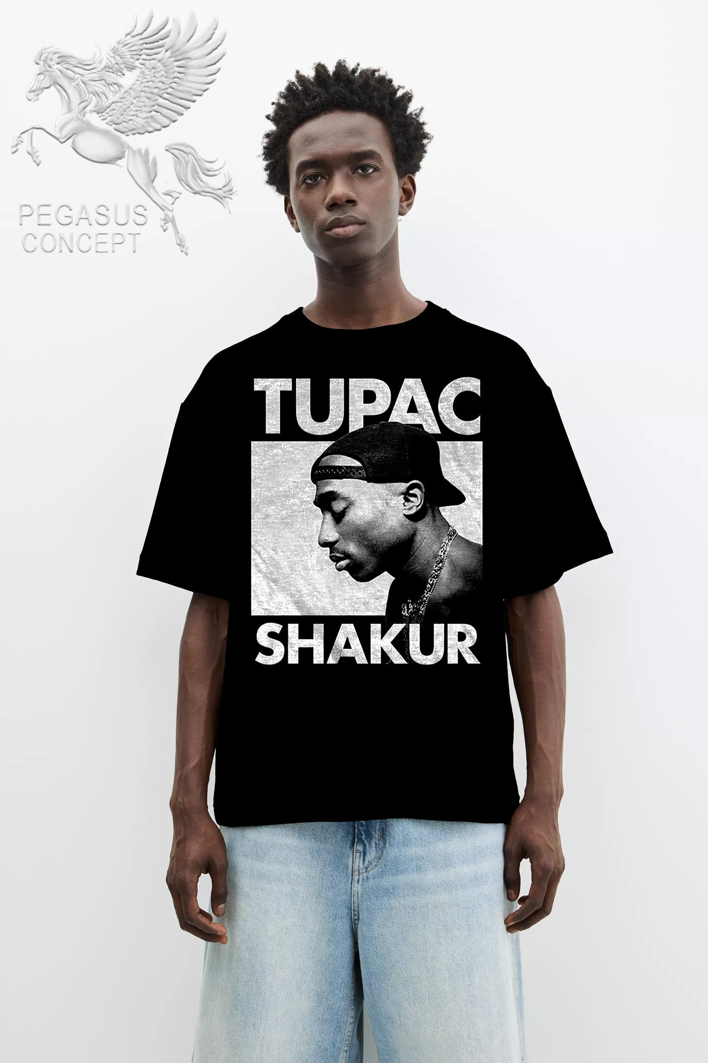 Μπλούζα μακό Premium ποιότητας σε χρώμα μαύρο με τύπωμα Tupac