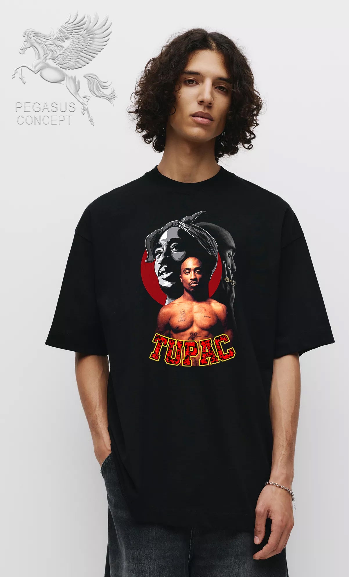 Μπλούζα μακό Premium ποιότητας σε χρώμα μαύρο με τύπωμα Tupac
