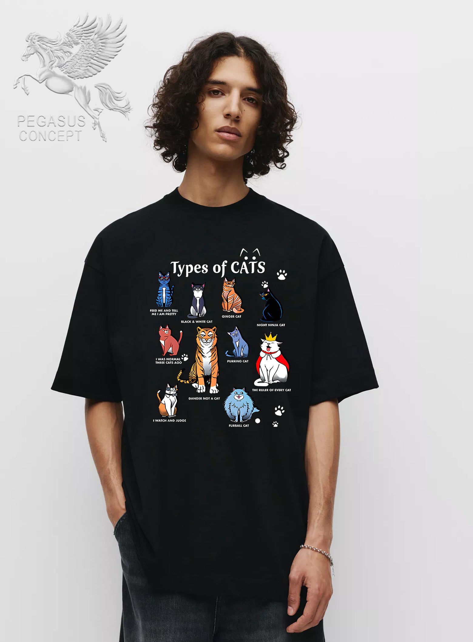 Μπλούζα μακό Premium ποιότητας σε χρώμα μαύρο με τύπωμα Types of Cats