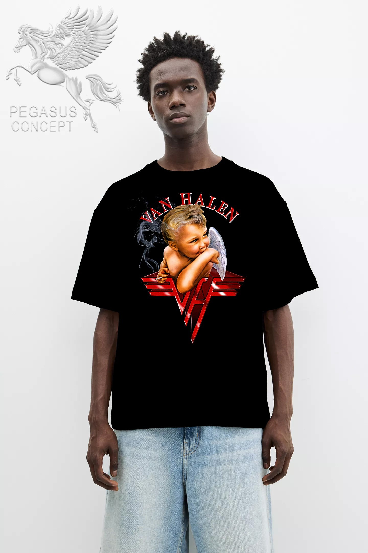 Μπλούζα μακό Premium ποιότητας σε χρώμα μαύρο με τύπωμα Van Halen